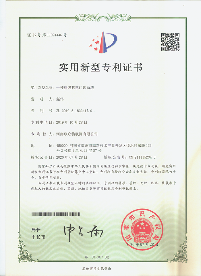 • 實用新型專利證書